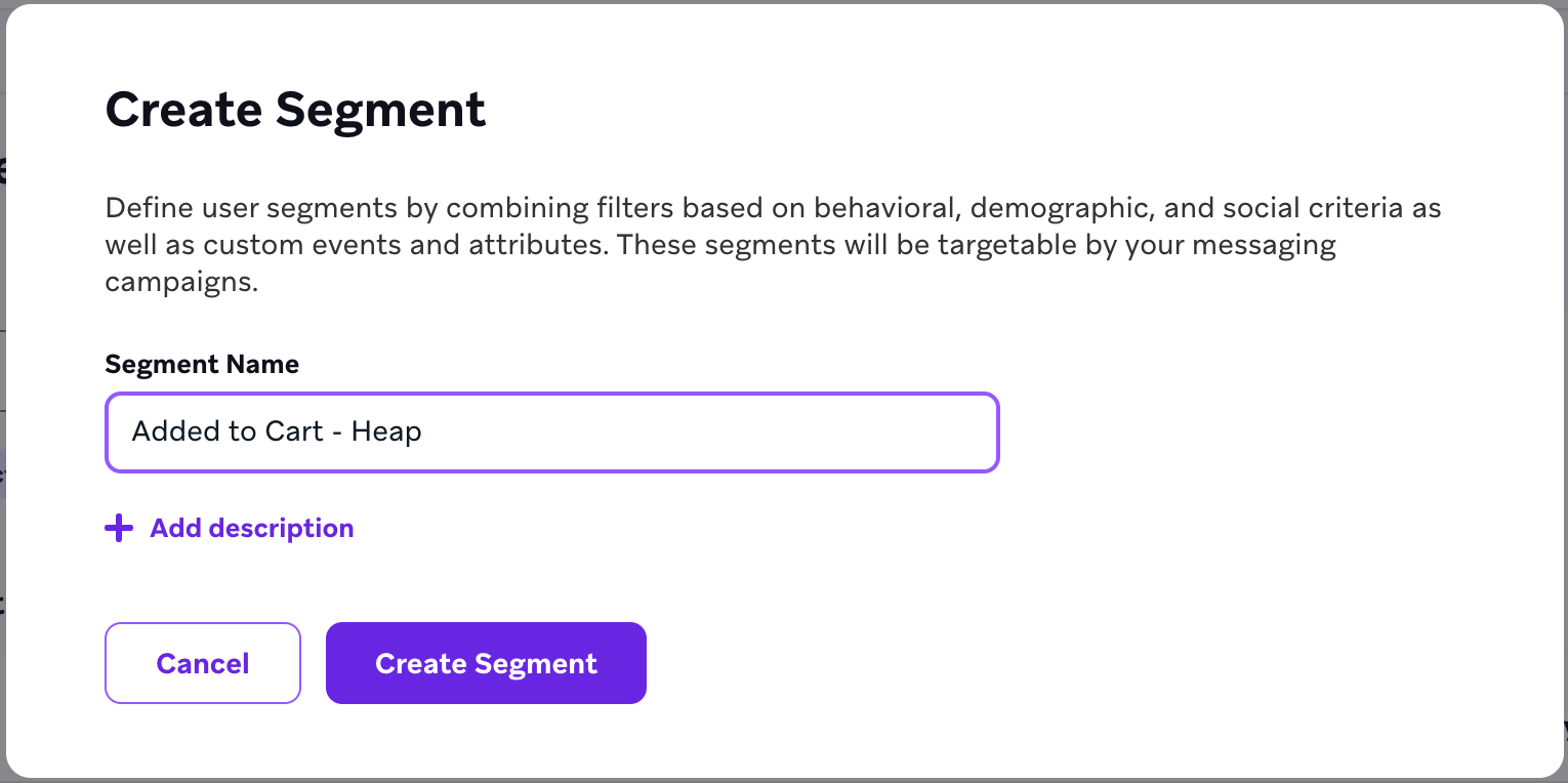 Once synced to Braze, a Cohort is created in Braze using the same name as the Heap Segment. All users that belong to the Heap Segment will be added to the Braze Cohort. If users are removed from the Heap segment due to the Heap segment criteria, they will be removed from the Braze Cohort during the next sync.