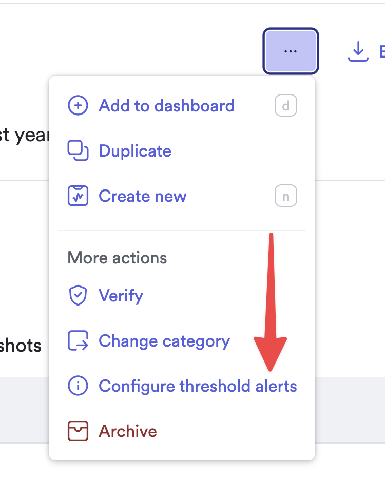 Click the ... menu and select Configure threshold alerts in the drop-down that appears.
