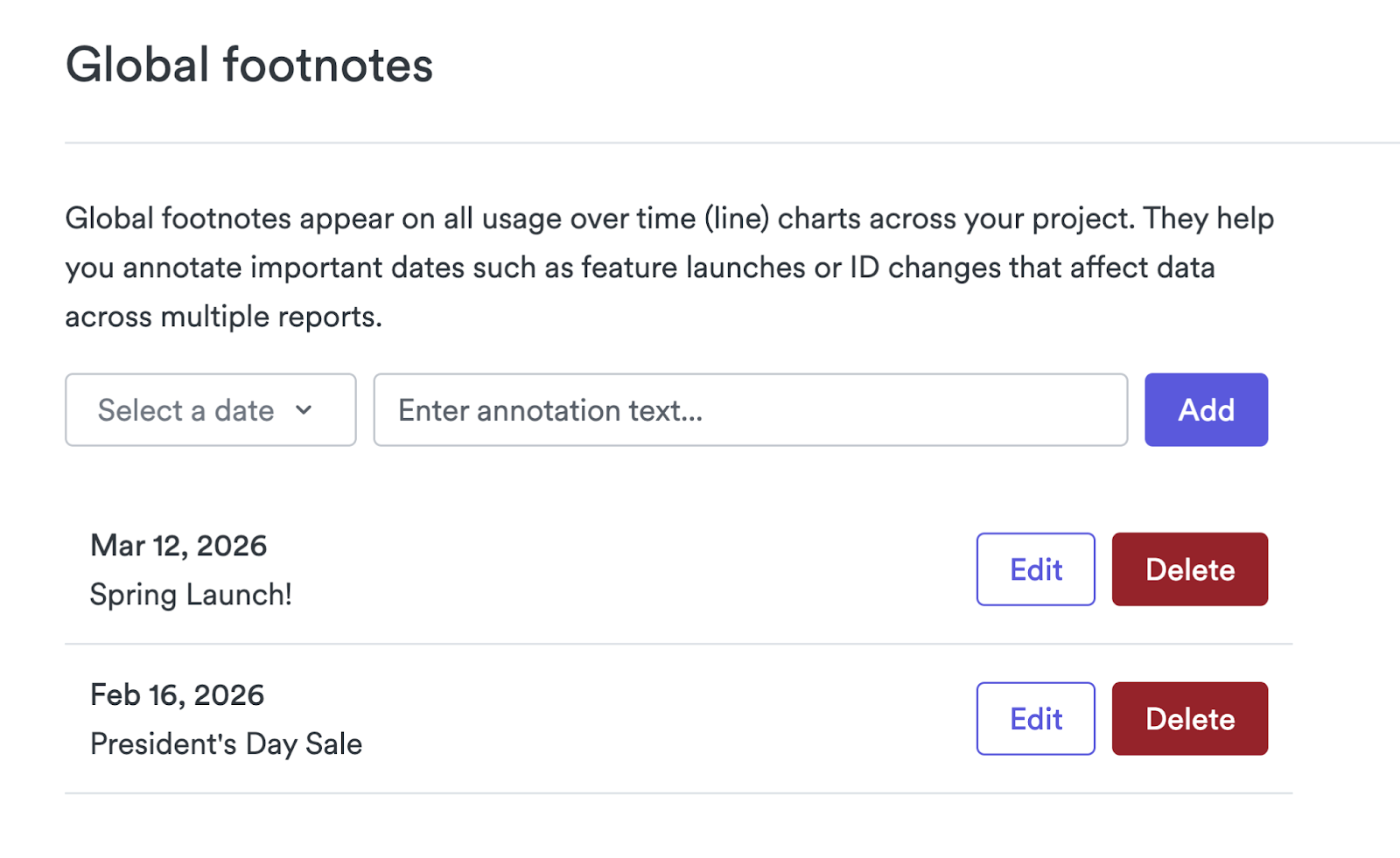 Add date labels to all your Usage over time charts to mark events like ID changes, feature launches, or system migrations.